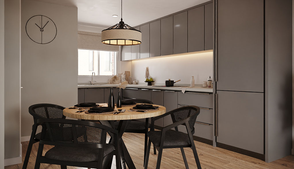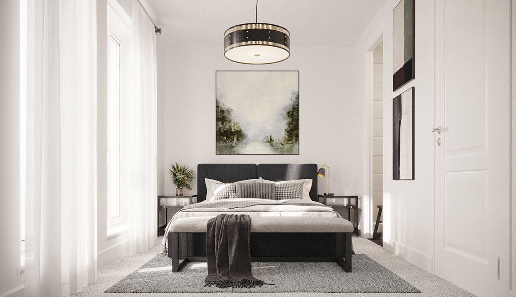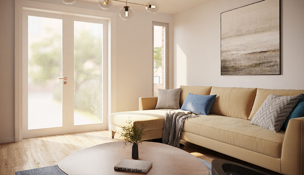 In order to create high quality interior shots, styling is a key consideration. In this case because the apartment types were similar but the internal layouts differed, we suggested bespoke, core-market styling and mood board production for the main apartment type, which we would then adapt for the other two. Changes we could incorporate to the styling to keep within the budget included colour choice and propping, which would be enough to distinguish the apartment types from each other. This way we could cost each subsequent apartment type based on having produced the initial apartment. In terms of marketing timescales, this fit in well with the client as the two apartment types they wanted to market first would be ready in time.