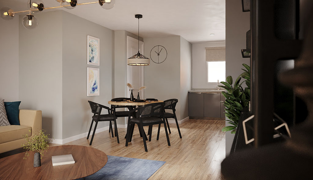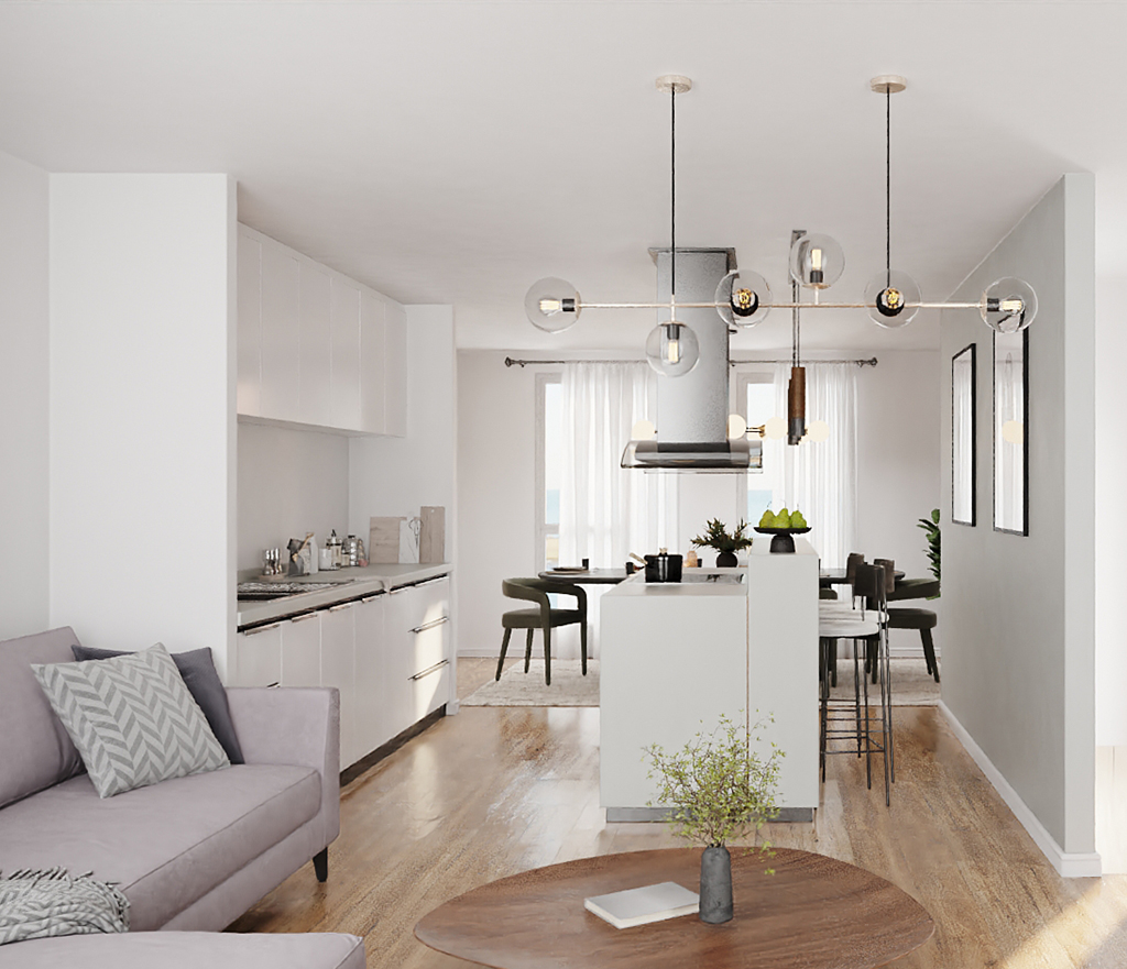 We were approached by the marketing department of Ascent Homes regarding a coastal development they wanted to market using interior animation and stills to complement their architect’s exterior CGIs. The development, Commissioner’s Quay, was made up of several blocks of apartments on Blyth’s waterfront. The apartments comprised of three different house types – the budget was limited to £4500 per house type and it was key to composite sea views into the animation.