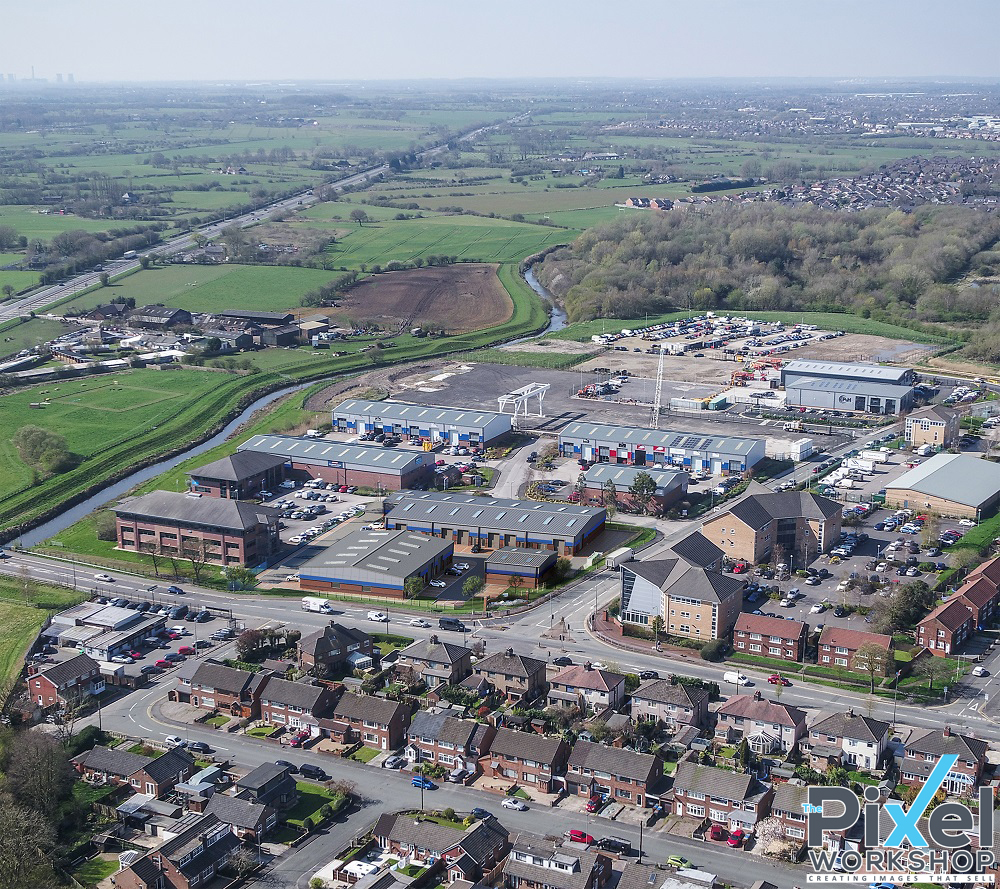 Take a look at the shot below, commissioned by Hurstwood Holdings, of one of their latest projects, Leigh Commerce Park. The original shot, taken by drone, was used to composite the proposed buildings into. Along with some ground-level full CGI close up shots, this image was used to create interest for commercial lettings whilst the site was still being built.
