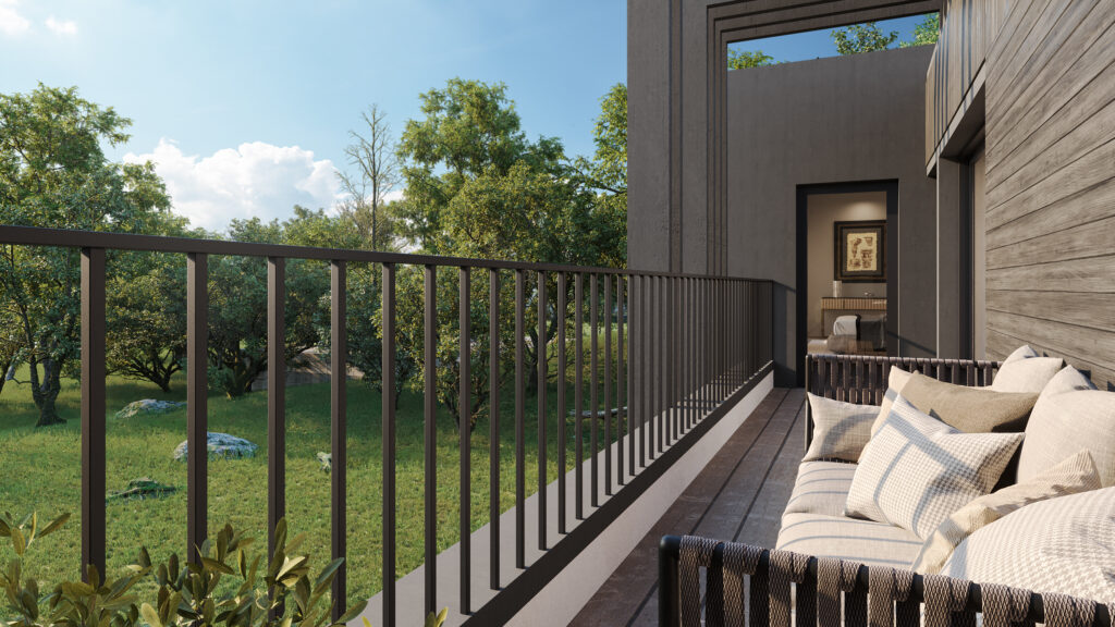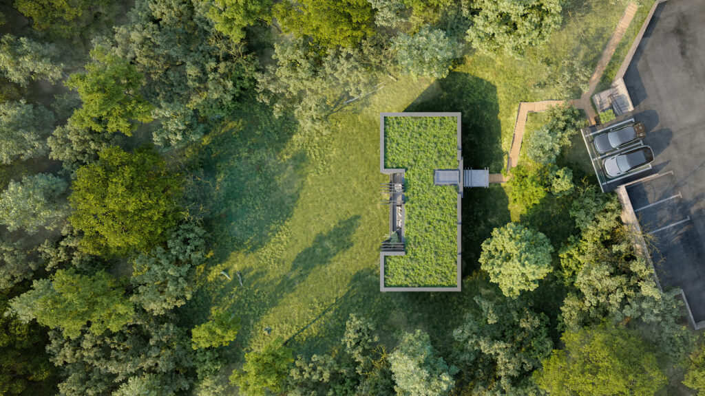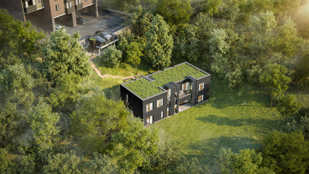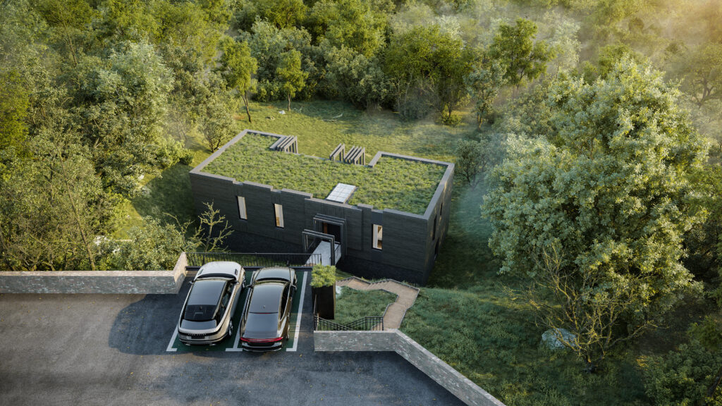 The client asked us to depict the very unique selling points of the land and the design itself. It was key for us to portray the woodlands as accurately as possible and to show what a beautifully sheltered hideaway this would be.