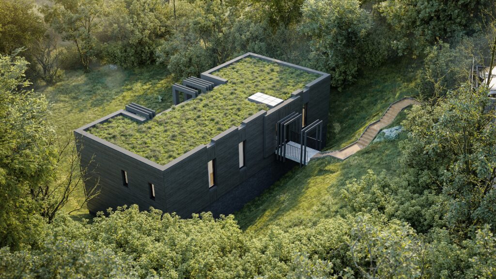 The client asked us to depict the very unique selling points of the land and the design itself. It was key for us to portray the woodlands as accurately as possible and to show what a beautifully sheltered hideaway this would be.